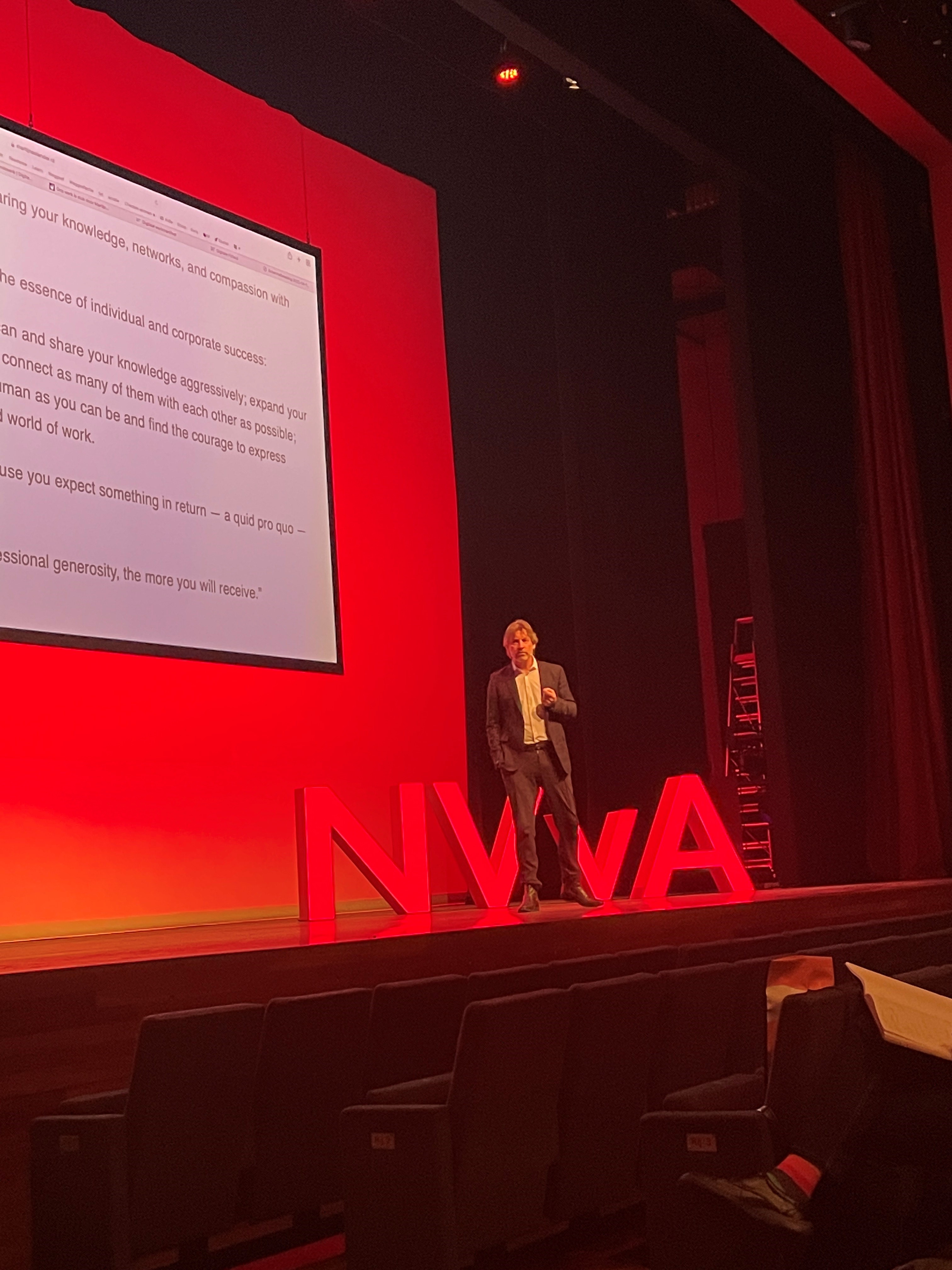 De dag werd afgesloten door ‘stand-up filosoof’ Martijn Aslander, co-auteur van het boek ‘Ons werk is stuk’. Volgens Aslander is het de hoogste tijd om de werk-werkelijkheid kritisch onder de loep te nemen. Hij focust zich daarbij op kenniswerk(ers): “Niemand heeft geleerd hoe je met kennis en informatie om moet gaan. Het resultaat: iedere kenniswerker doet – naar eer en geweten – maar wat. Het gevolg: “We zijn 240 uur per jaar kwijt aan zoeken en 40 dagen per jaar aan compenseren van wat we alweer vergeten zijn. En gedoe met de computer kost nog eens 100 tot 300 uur per jaar.” Het leidt niet alleen tot stress, burn-out en demotivatie, maar ook dat relevante informatie niet snel beschikbaar is in situaties wanneer je het nodig hebt. “Jammer, want juist delen van informatie is de snelste manier om sociaal kapitaal op te bouwen”, aldus Aslander. Organisaties moeten daarom digitale fitheid opleggen aan kennismedewerkers en persoonlijk kennismanagement serieus nemen.” Pak je de zaken op zijn manier aan, dan volstaat een vierdaagse werkweek met vijf focusuren per dag, kunnen mensen duurzaam inzetbaar blijven en een leven lang leren.